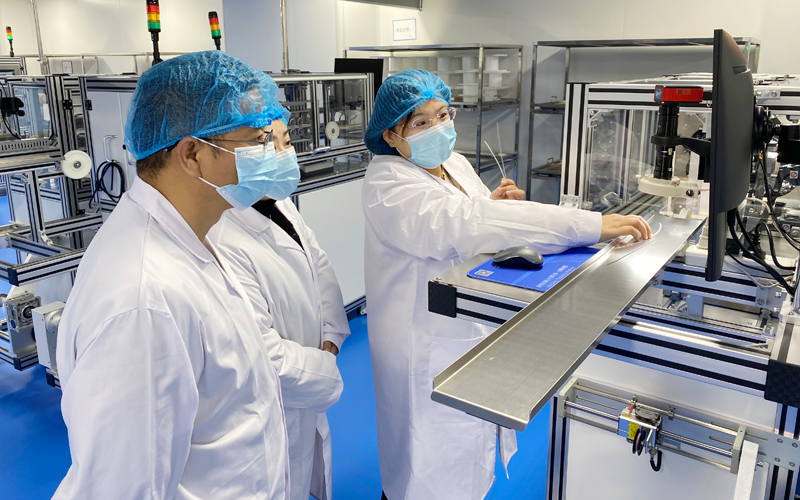 11月24日上午,湖南省醴陵市衛(wèi)健局領(lǐng)導(dǎo)一行蒞臨康譽(yù)醫(yī)療實(shí)地參觀考察,并進(jìn)行了深度座談交流,集團(tuán)副總經(jīng)理謝蘭廷、周查全程陪同。康譽(yù)醫(yī)療副總經(jīng)理張艷琴對參觀團(tuán)一行的到來表示熱烈歡迎,并予以熱情接待。他們依次參觀了公司展廳、車間,深入了解了公司的建設(shè)、運(yùn)營及業(yè)務(wù)發(fā)展情況。